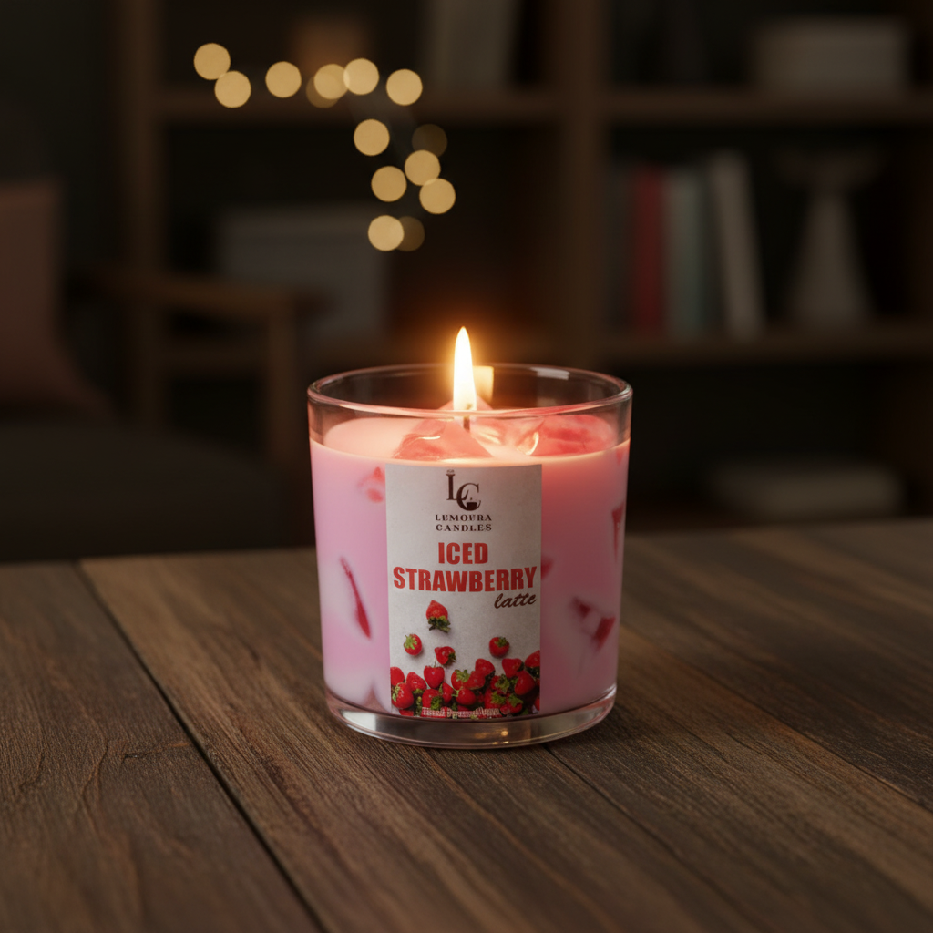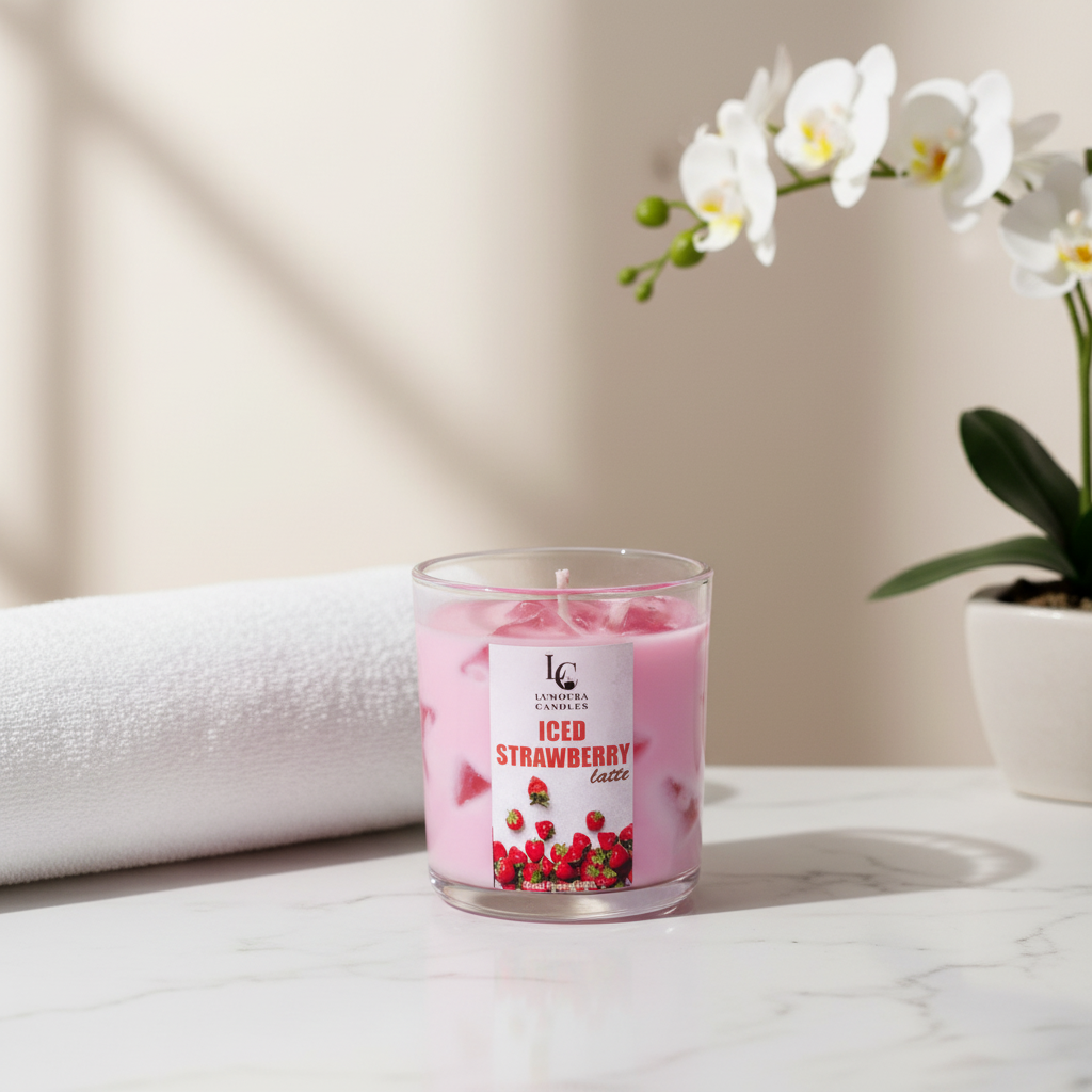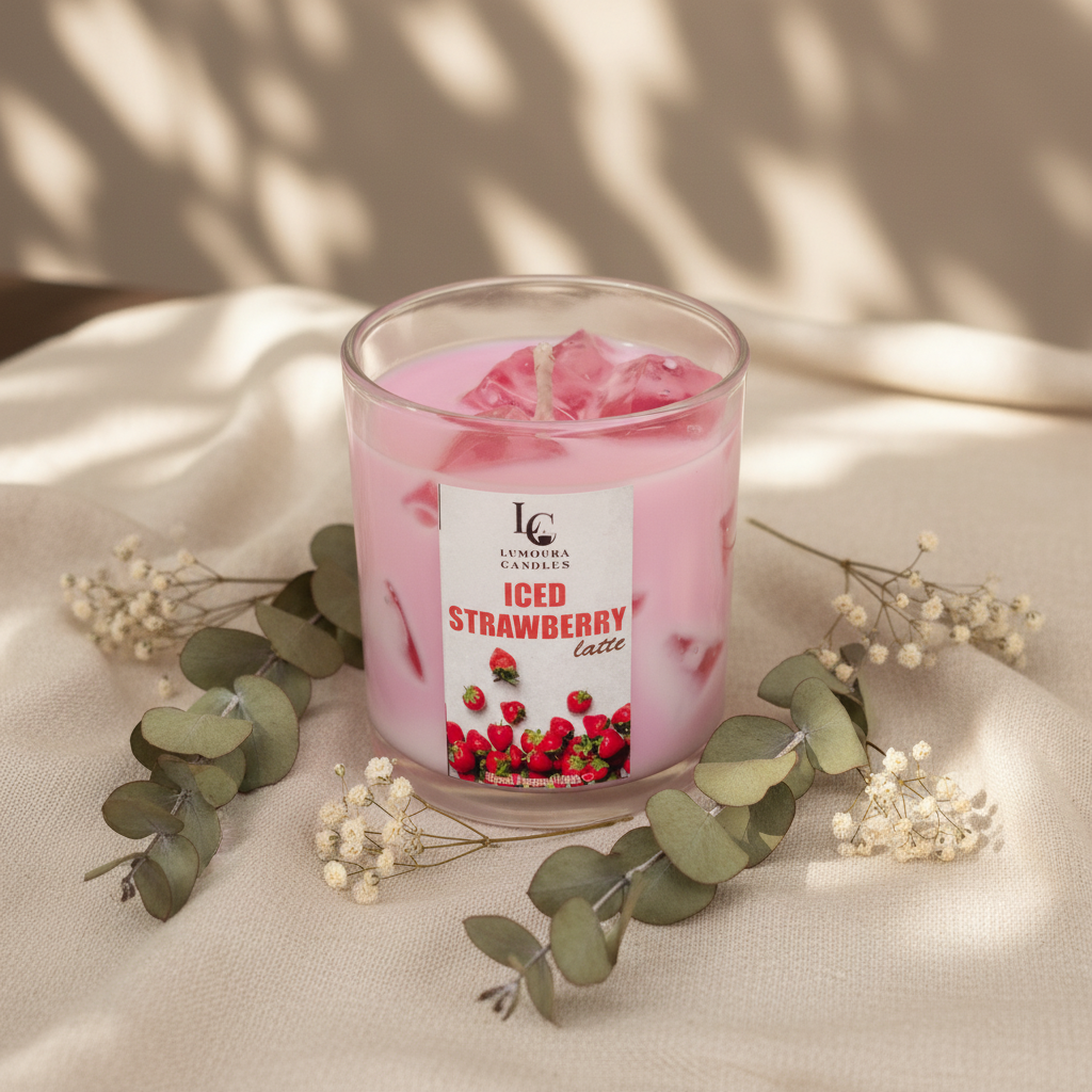 Treat yourself to a deliciously comforting fragrance with Lumoura Candles’ Iced Strawberry Latte.